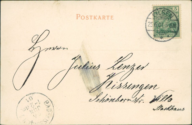 Alte Ansichtskarte aus Porta Westfalica, gelaufen am 25.06.1901 von Eilsen nach Bad Kissingen. Ankunft in Bad Kissingen am 26.06.1901.