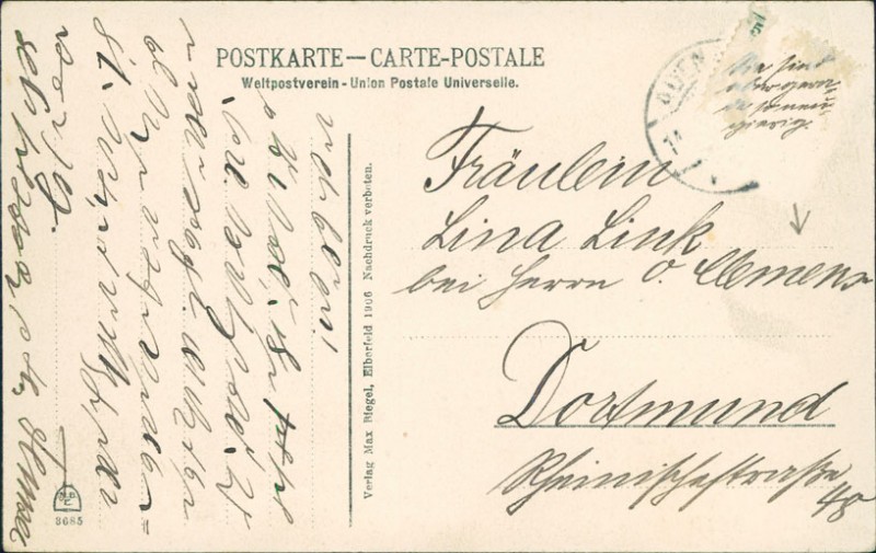 Alte Ansichtskarte aus Adenau, gelaufen um 1908 von Adenau nach Dortmund.