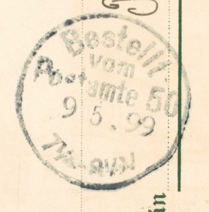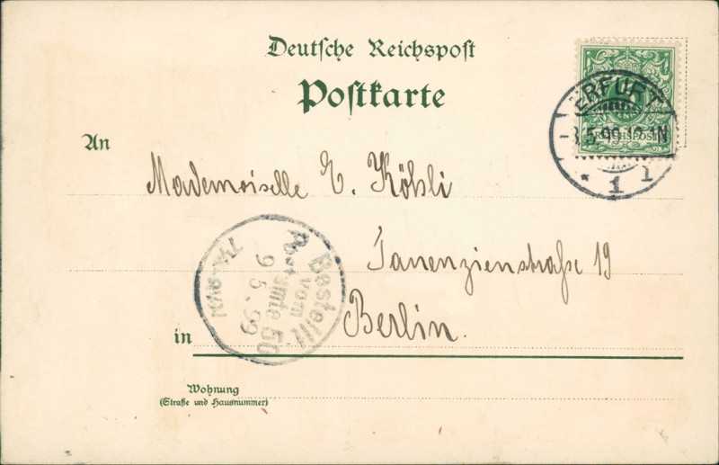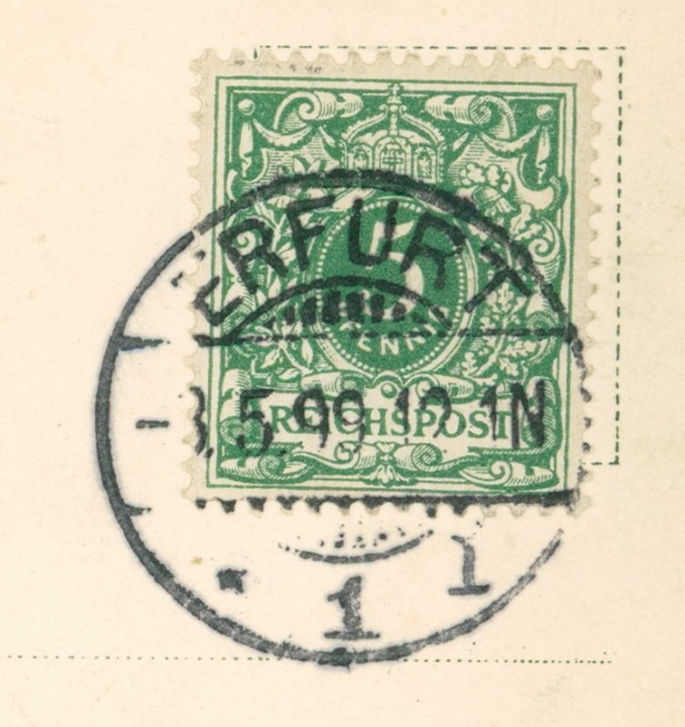 Alte Ansichtskarte aus Erfurt, gelaufen am 08.05.1899 von Erfurt nach Berlin. Ankunft in Berlin am 09.05.1899.