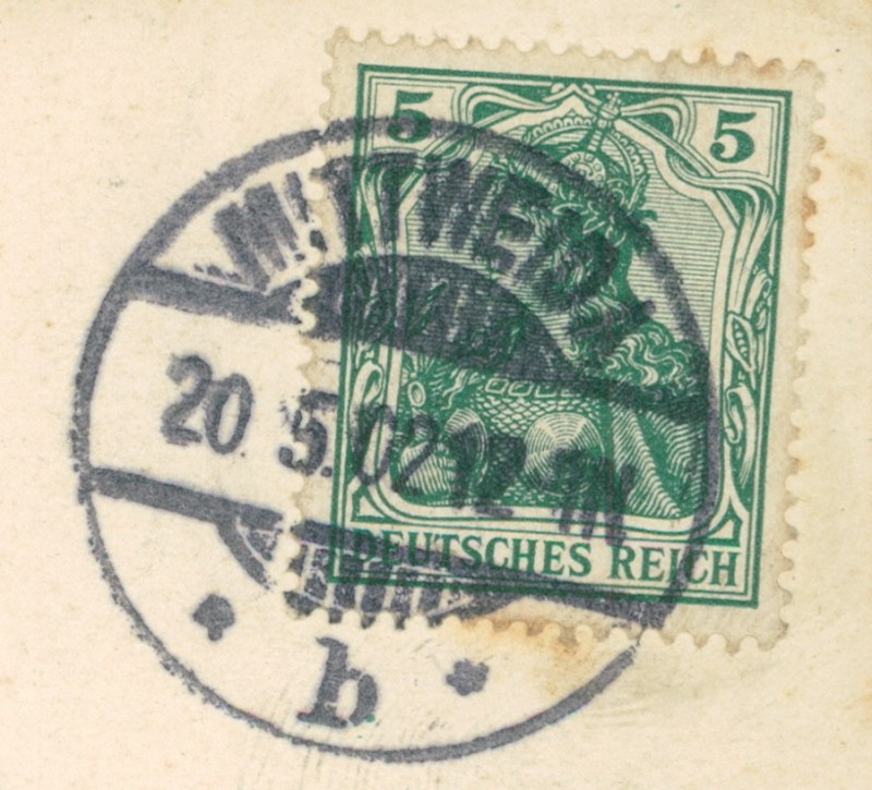 Alte Ansichtskarte aus Mittweida-Kockisch, gelaufen um 0 von 20.05.1902 nach Jüchen. Ankunft in Jüchen am 21.05.1902.