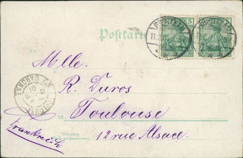 Alte Ansichtskarte aus Grottkau / Grodków, gelaufen am 11.02.1901 von Grottkau nach Toulouse. Ankunft in Toulouse am 13.02.1901.