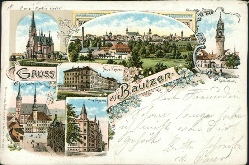Alte Ansichtskarte aus Bautzen, gelaufen am 04.07.1897 von Sulzbach nach St. Johann. Ankunft in St. Johann am 04.07.1897.