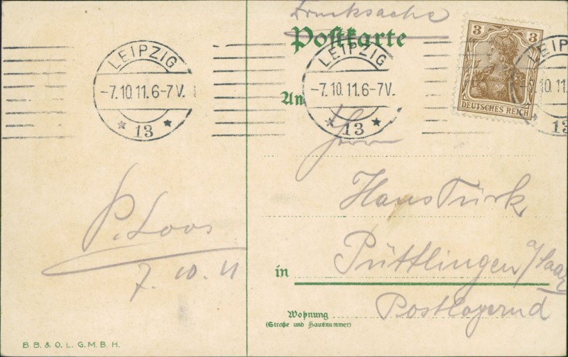 Alte Ansichtskarte aus Leipzig-Großzschocher, gelaufen am 07.10.1911 von Leipzig nach Püttlingen.
