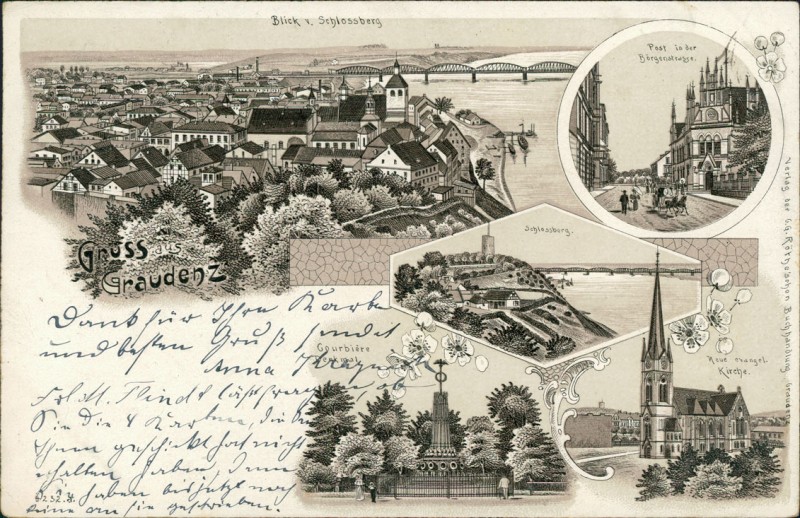 Alte Ansichtskarte aus Graudenz / Grudziądz, gelaufen um 1899 von Graudenz nach Paris.