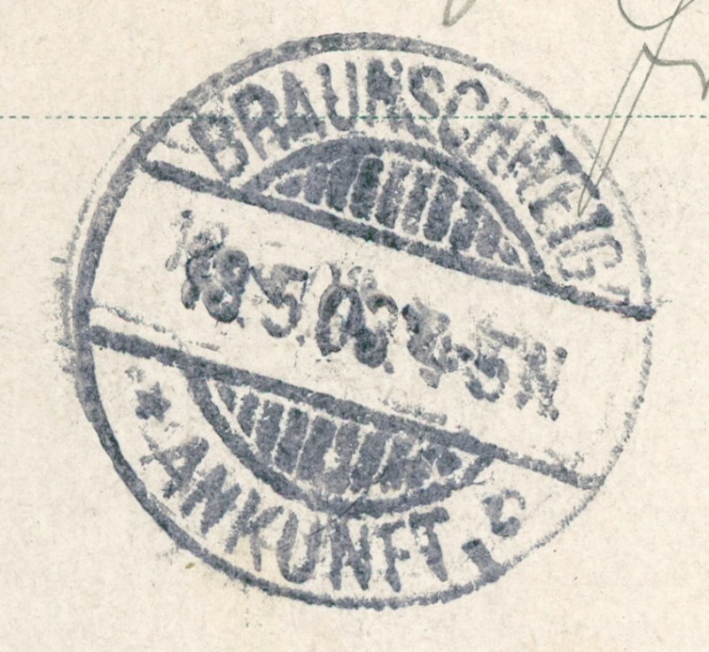 Alte Ansichtskarte aus Berlin-Niederschöneweide, gelaufen am 18.05.1903 von Nieder-Schöneweide nach Braunschweig. Ankunft in Braunschweig am 18.05.1903.