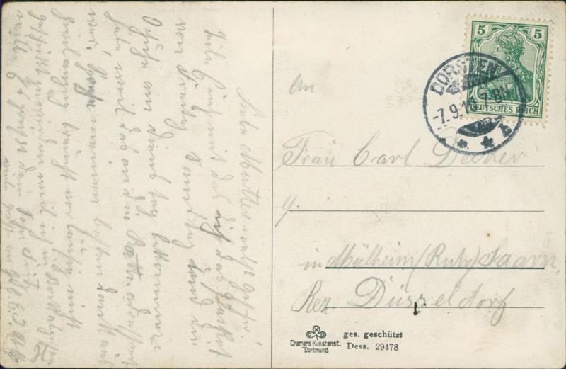 Alte Ansichtskarte aus Dorsten, gelaufen am 07.09.1910 von Dorsten nach Mülheim/Ruhr.
