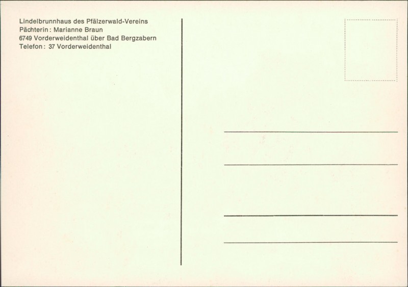 Lindelbrunnenhaus des Pfälzerwald-Vereins Pächterin: Marianne Braun