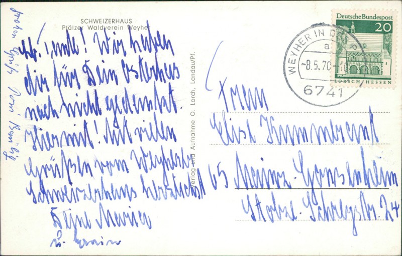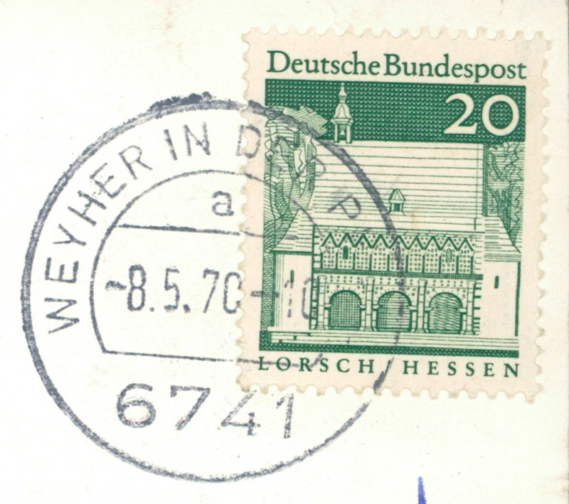 Alte Ansichtskarte aus Weyher, gelaufen am 08.05.1970.