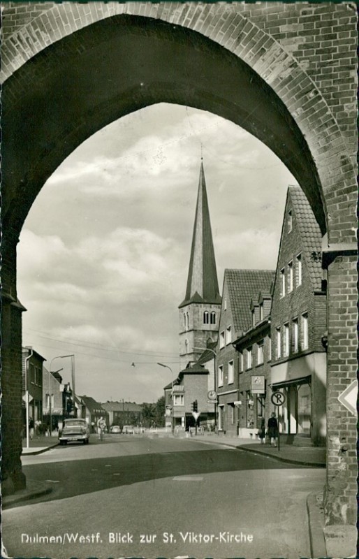 Alte Ansichtskarte aus Dülmen, gelaufen am 10.02.1964 von Dülmen (Ortswerbestempel) nach Hemer.