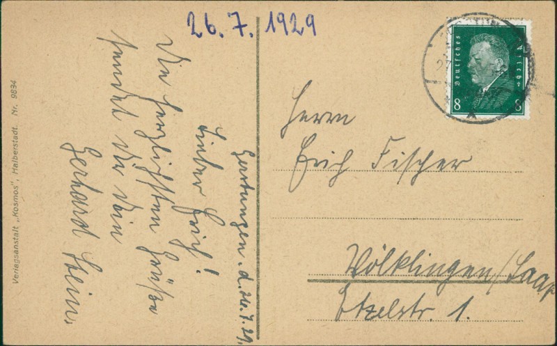 Alte Ansichtskarte aus Gerstungen, gelaufen am 27.07.1929 von Gerstungen nach Völklingen.