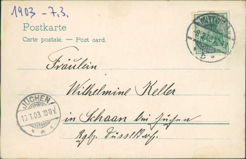Alte Ansichtskarte aus Mittweida, gelaufen am 09.03.1903 von Mittweida nach Schaan bei Jüchen.
