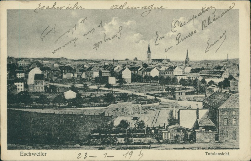 Alte Ansichtskarte aus Eschweiler, beschrieben um 1919.