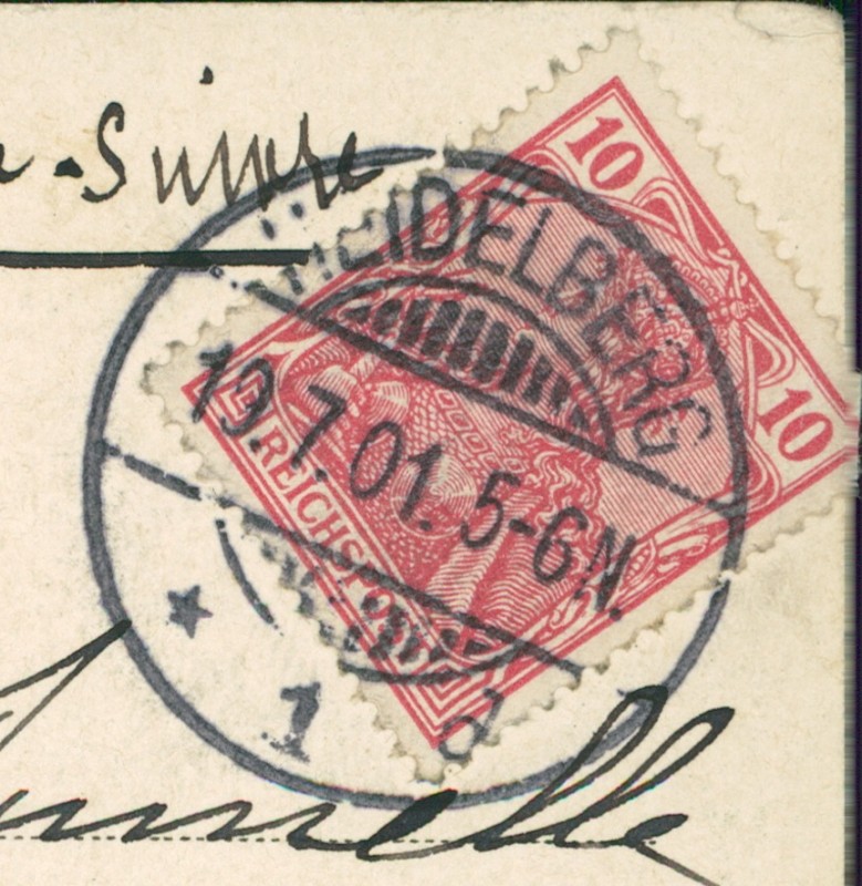 Alte Ansichtskarte aus Heidelberg, gelaufen am 19.07.1901 von Heidelberg nach Paris. Ankunft in Paris am 20.07.1901.