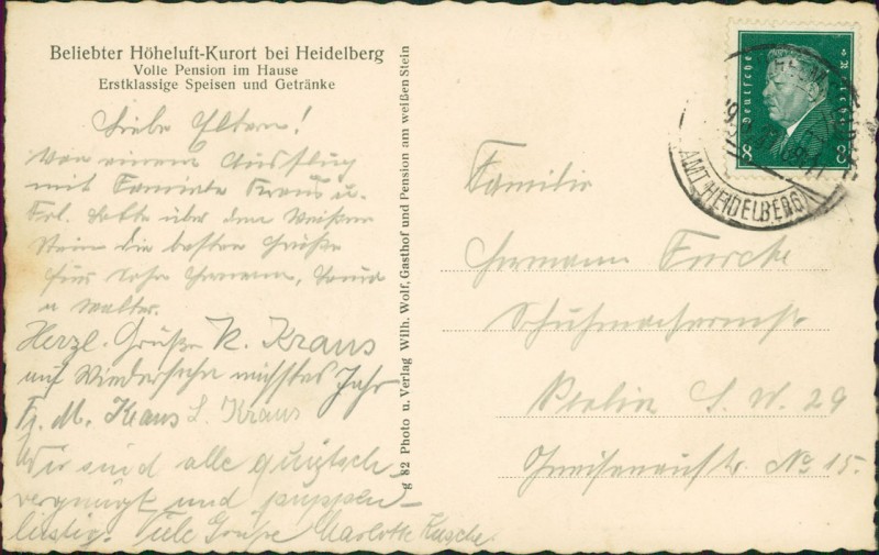 Alte Ansichtskarte aus Heidelberg, gelaufen um 1929.