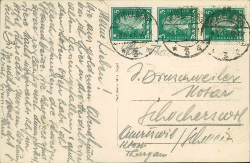 Alte Ansichtskarte aus Heidelberg, gelaufen am 03.06.1927 von Heidelberg nach Schocherswil.