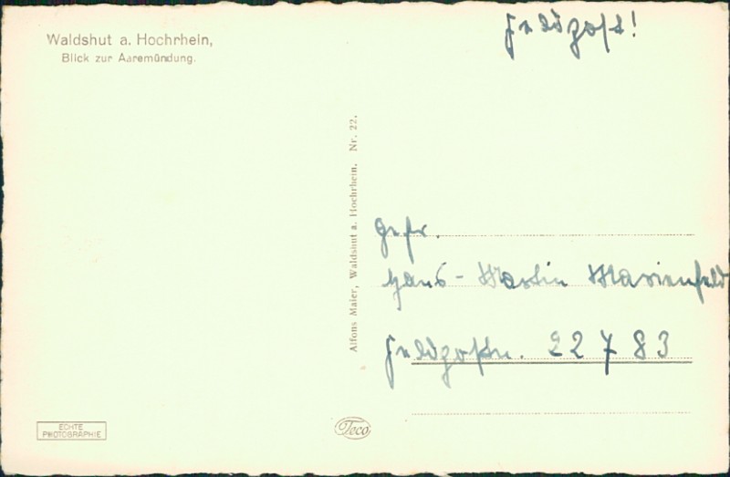 Alte Ansichtskarte aus Waldshut-Tiengen, ungebraucht, gedruckt um 1940.