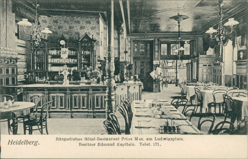 Bürgerliches Hotel-Restaurant Prinz Max am Ludwigsplatz. Besitzer Edmund Kapitain. Telef. 171