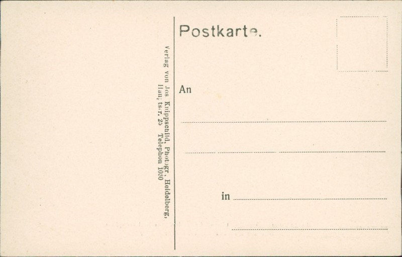 | Verlag | Jos. Knippschild, Photogr. Heidelberg, Hauptstr. 25 Telephon 1030 |