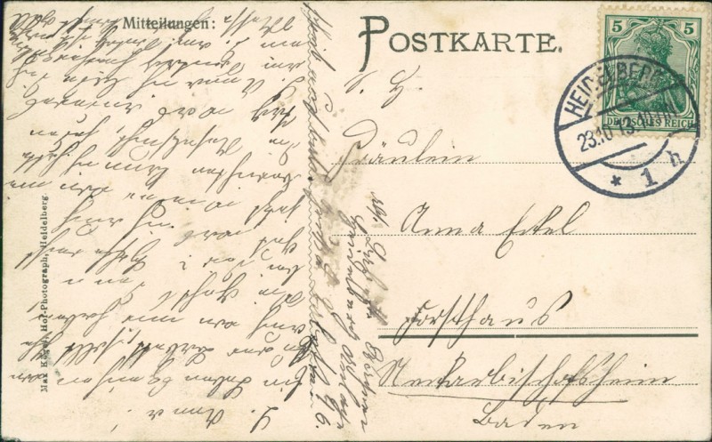 Alte Ansichtskarte aus Heidelberg, gelaufen am 23.10.1913.