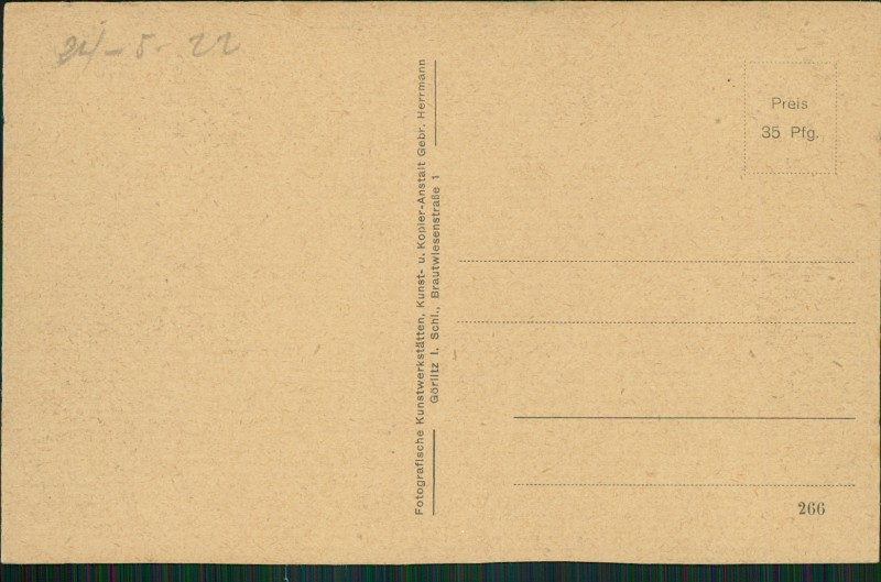 | Verlag | Fotografische Kunstwerkstätten, Kunst- u. Kopier-Anstalt Gebr. Herrmann Görlitz i. Schl., Brautwiesenstraße 1 |