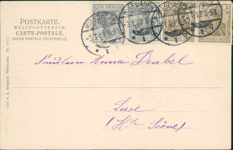 Alte Ansichtskarte aus Wiesbaden, gelaufen am 03.01.1903 von Wiesbaden nach Lure.