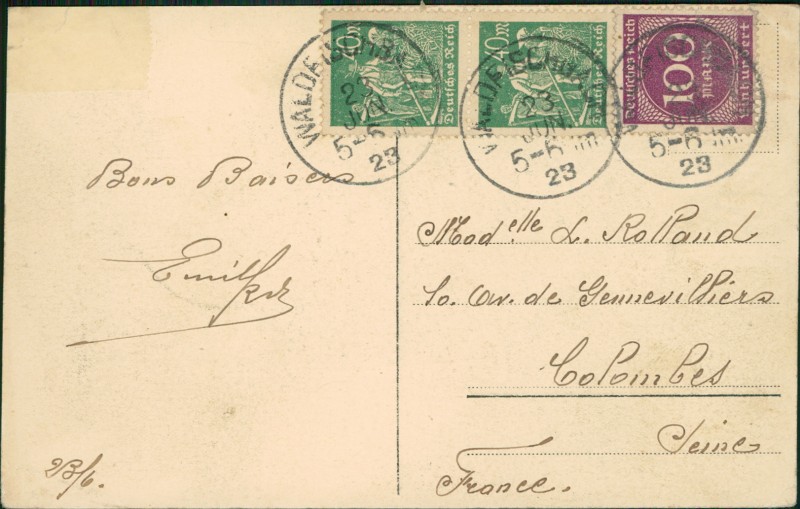 Alte Ansichtskarte aus Waldfischbach-Burgalben, gelaufen am 23.06.1923 von Waldfischbach nach Colombes.