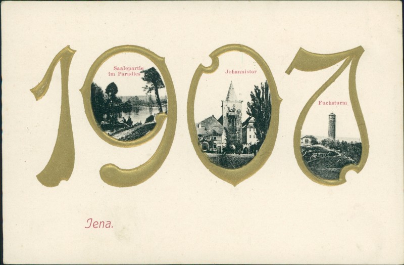 Alte Ansichtskarte aus Jena, ungebraucht, gedruckt um 1907.