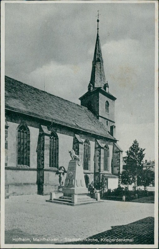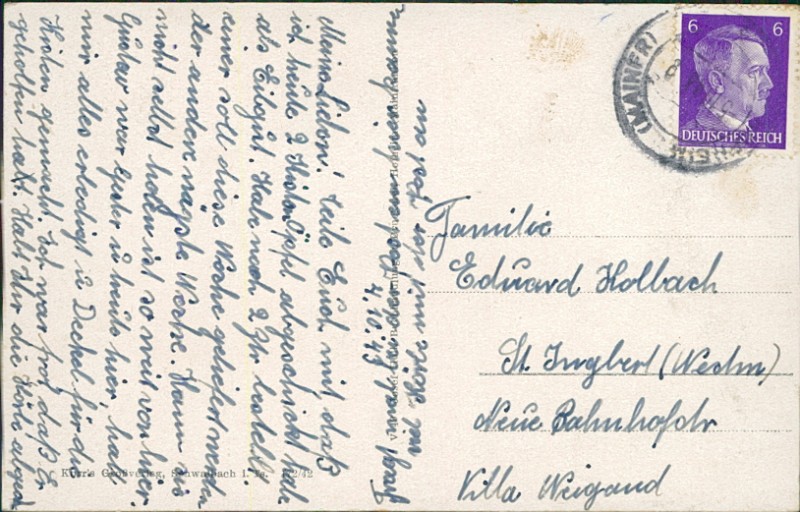 Alte Ansichtskarte aus Hofheim, gelaufen am 05.10.1943 von Hofheim (Mainfr) nach St. Ingbert.