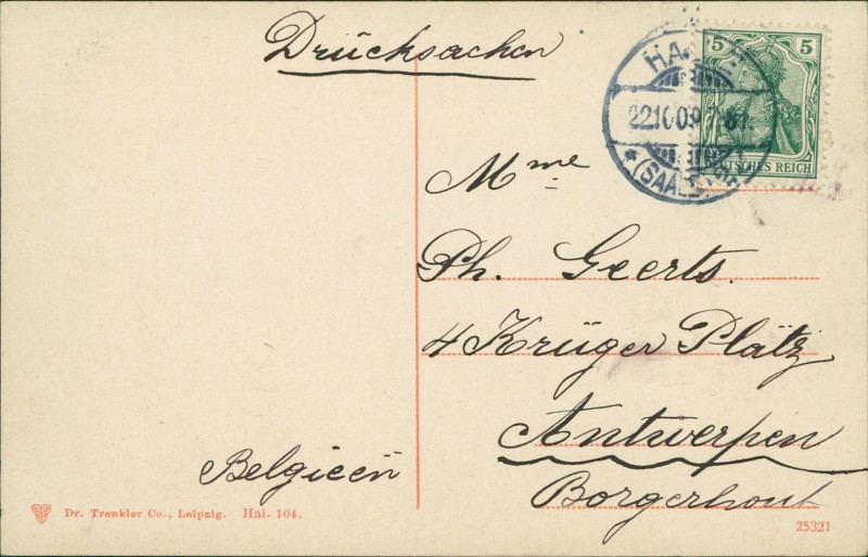 Alte Ansichtskarte aus Halle (Saale), gelaufen am 22.10.1909.