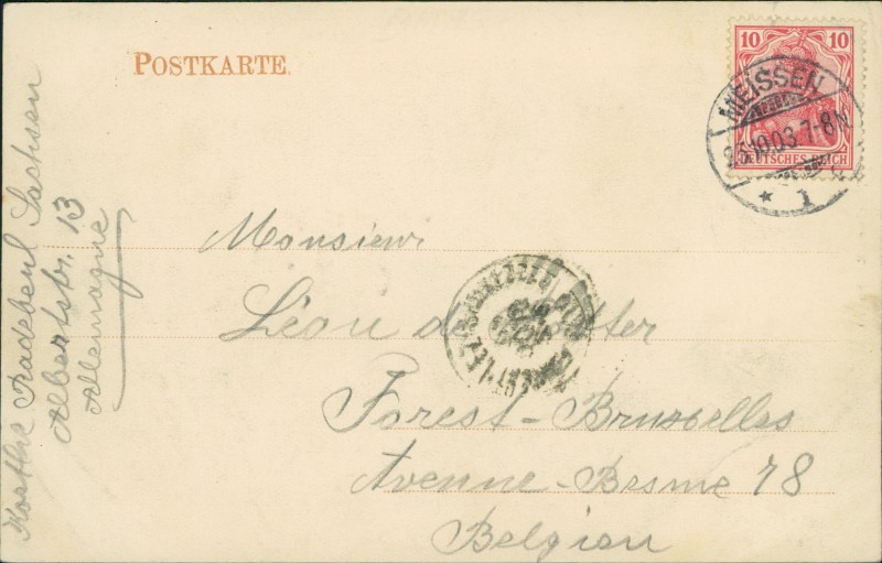 Alte Ansichtskarte aus Meißen, gelaufen am 25.10.1903.