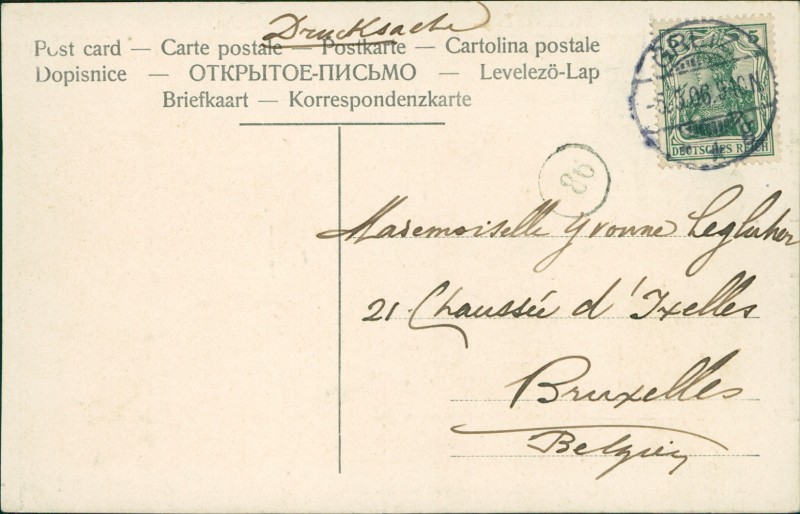 Alte Ansichtskarte aus Chemnitz, gelaufen am 05.06.1906 von Greiz nach Bruxelles.