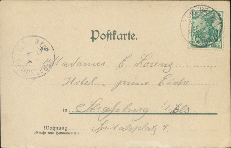 Alte Ansichtskarte aus Rehburg-Loccum, gelaufen am 05.09.1902 von Rehburg nach Straßburg i/Els.