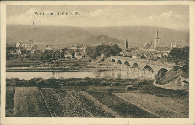 Alte Ansichtskarte aus Lohr, gelaufen am 04.01.1937 von Lohr (Main) nach Otterstadt.