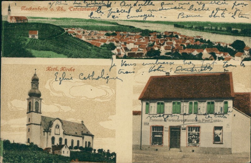 Alte Ansichtskarte aus Nackenheim, beschrieben um 1919.