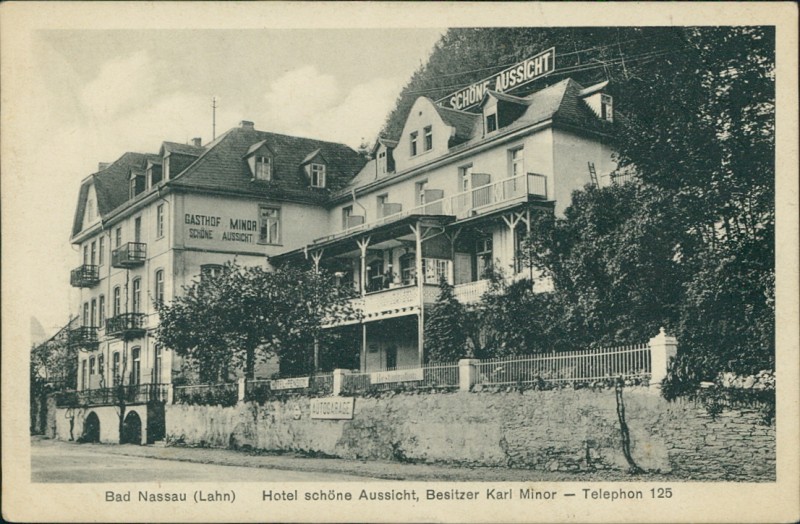Hotel schöne Aussicht, Besitzer Karl Minor - Telephon 125