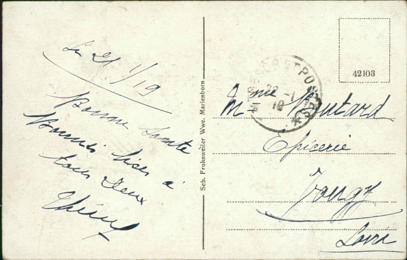 Alte Ansichtskarte aus Mainz-Marienborn, gelaufen am 22.01.1919.