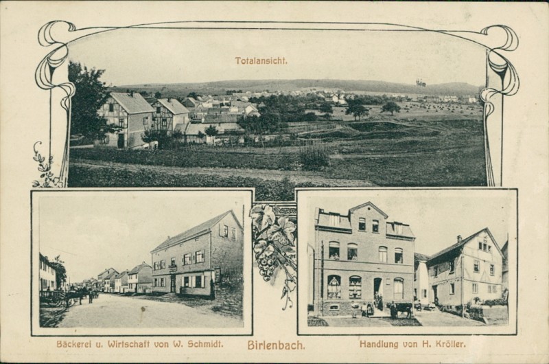 Totalansicht, Bäckerei u. Wirtschaft von W. Schmidt, Handlung von H. Kröller