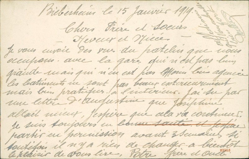 Alte Ansichtskarte aus Biebesheim am Rhein, beschrieben am 15.01.1919.