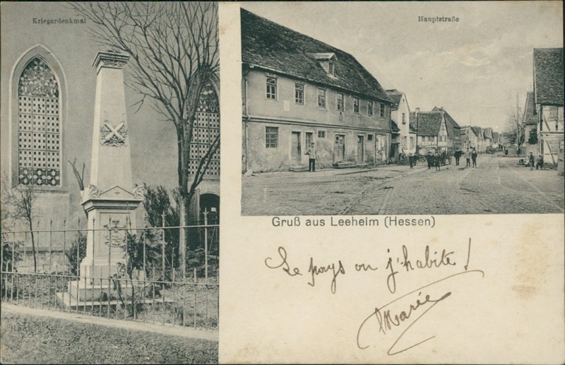 Alte Ansichtskarte aus Riedstadt-Leeheim, beschrieben um 1919.