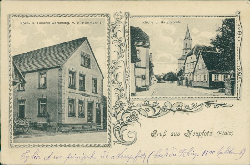 Korb- u. Colonialwarenhdlg. v. K. Hoffmann I., Kirche u. Hauptstrasse