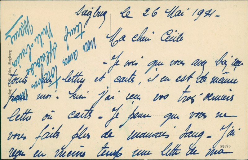 Alte Ansichtskarte aus Siegburg, beschrieben am 26.05.1921.