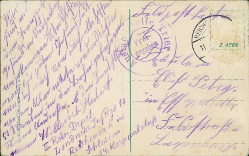 Alte Ansichtskarte aus Reichenbach / Dzierżoniów, gelaufen um 1916.