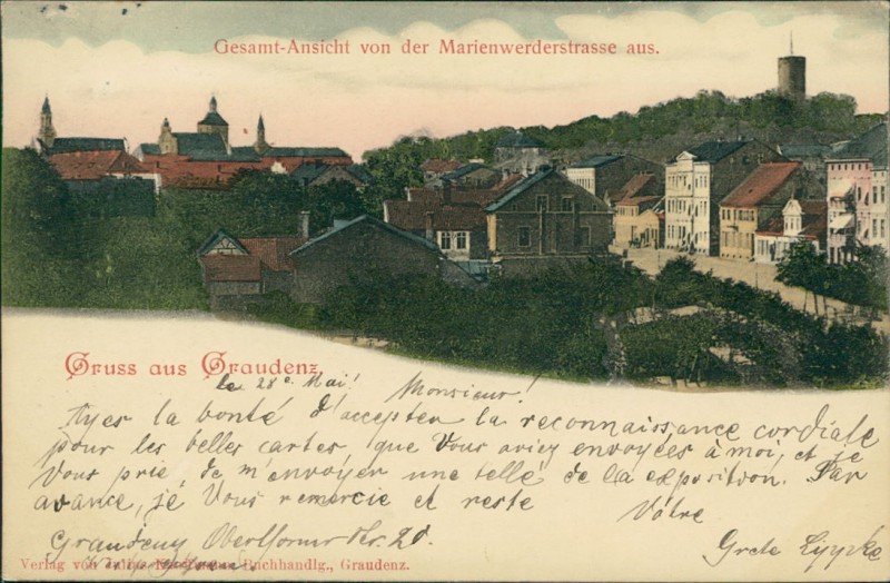 Alte Ansichtskarte aus Graudenz / Grudziądz, gelaufen um 1901 von Graudenz nach Paris.