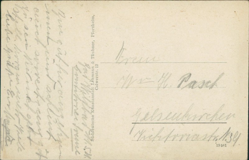 | Verlag | Süddeutsche Kunstanstalt Lehmann & Täubner, Pforzheim, Calwerstr. 12 |