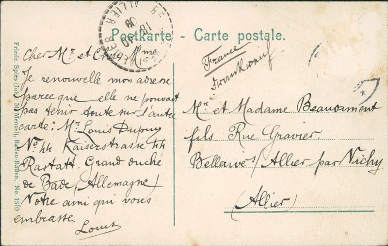 Alte Ansichtskarte aus Baden-Baden, gelaufen um 1908.