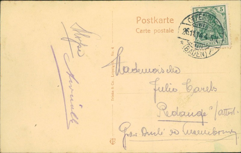 Alte Ansichtskarte aus Offenburg, gelaufen am 26.11.1914.