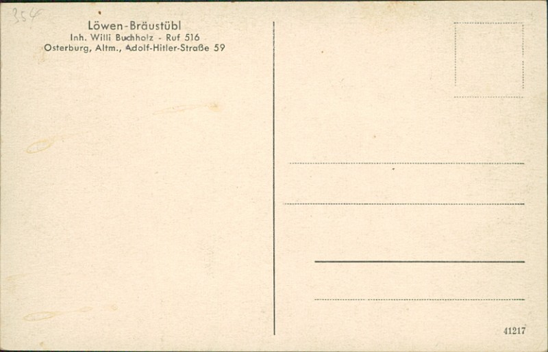 Alte Ansichtskarte aus Osterburg (Altmark), ungebraucht, gedruckt um 1941.