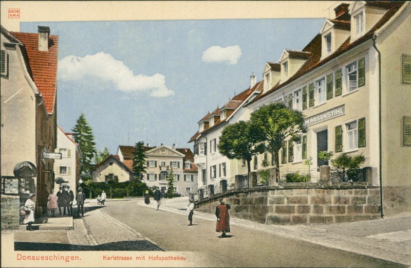 Alte Ansichtskarte aus Donaueschingen, ungebraucht, gedruckt um 1910.