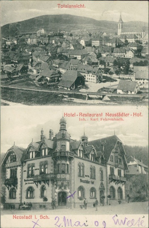 Alte Ansichtskarte aus Titisee-Neustadt, gelaufen um 1909 von Neustadt nach Colmar Elsass.