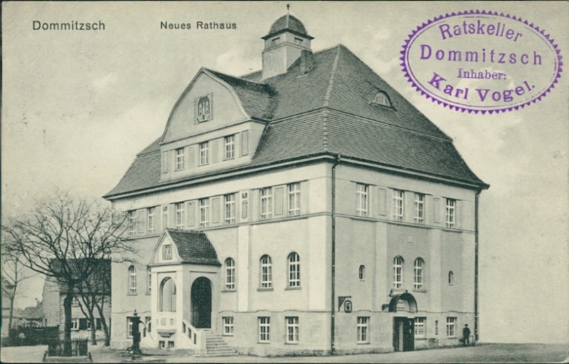 Alte Ansichtskarte aus Dommitzsch, gelaufen am 24.12.1911 von Dommitzsch nach Leipzig.